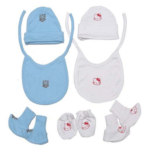 B3Fashion Made In India 100% SOft Cotton Baby Care Clothing Accessories Set - Combo of 7 (Blue & White)