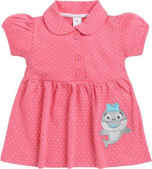 BABIES HEART Girls Pink Embroidered Pure Cotton Fit and Flare Dress ( 6 - 12 M )