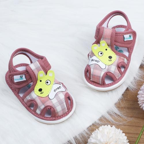 Baby Moo Cute Puppy Checked Chu-Chu Sound Breathable Anti-Skid Sandals - Pink