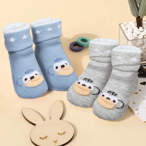 Baby Moo Little Monkey Cotton Anti-Skid 2 Pair Socks - Blue