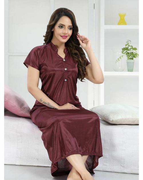 BAILEY SELLS Women Brown Solid Satin Nighty - Free Size | Free Size Nighties | Brown Nighties | Satin Nighties | Night wear | Sleep wear