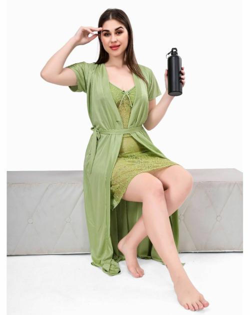 BAILEY SELLS Women Light Green Solid Satin Nighty with Robe - Free Size (Pack of 2) | Free Size Nighties | Light Green Nighties | Satin Nighties | Night wear | Sleep wear