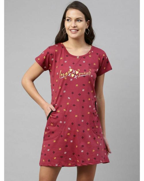 BAILEY SELLS Women Maroon Printed Pure Cotton Night Shirt - L | XXL Nightshirts | Maroon Nightshirts | Pure Cotton Nightshirts | Night wear | Sleep wear
