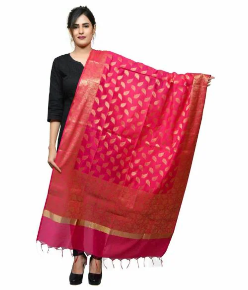 Banjara India Women's Banarasi Kora Silk Zari Dupatta - Leaf-Blue