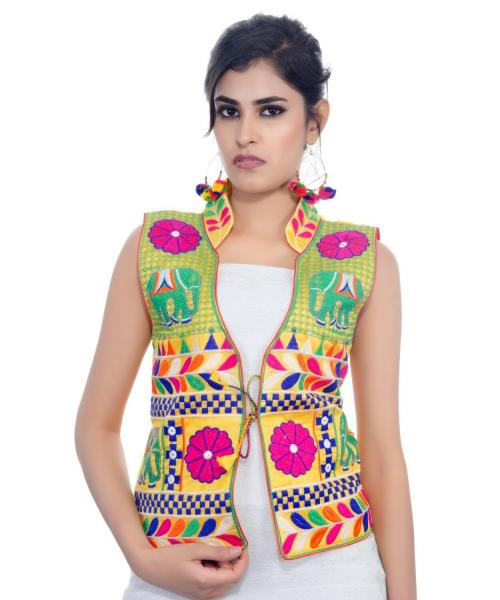 BANJARA INDIA Women Yellow Embroidered Dupion Silk Ethnic Jacket