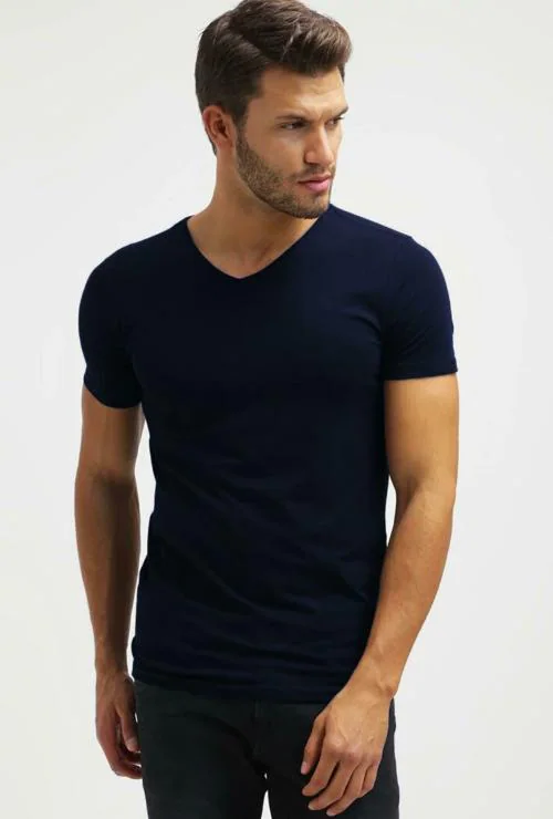 BASE 41 Men Blue Solid Cotton Blend T-shirt