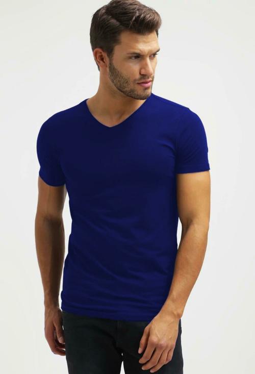BASE 41 Men Blue Solid Cotton Blend T-shirt