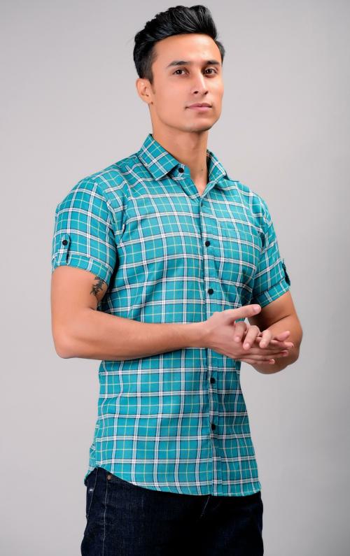 BASE 41 Men Light Green Checkered Cotton Blend Casual Shirts