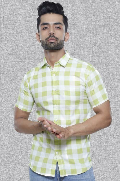 BASE 41 Men Light Green Checkered Cotton Blend Casual Shirts
