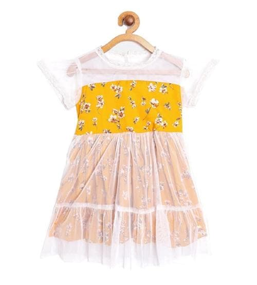 Bella Moda Girls Cotton Fit And Flair Printed Casual Dress - Yellow