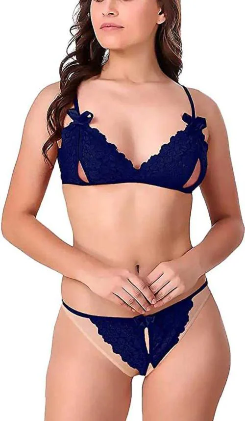 BELLEVINO Bra Panty Night Dress/Nightwear/Night Suit/ Babydoll Night Dress/Nighty In Blue Color