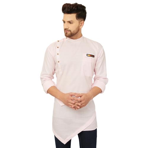 Ben Martin Men's Full Sleeve Cotton & Linen Angrakha Pink Short Kurta
