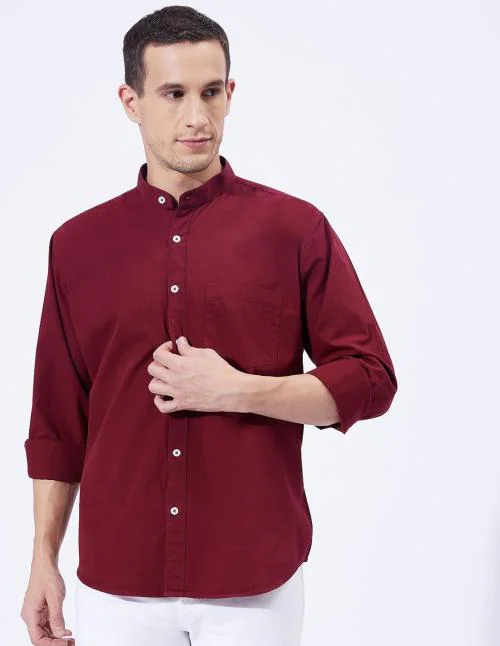 Ben Martin Men's Slim Fit Mandarin Collar Cotton Casual Full Sleeve Shirt Maroon