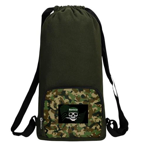 Benicia Military Print Cotton Canvas Backpack / Foldable Pithu Bag