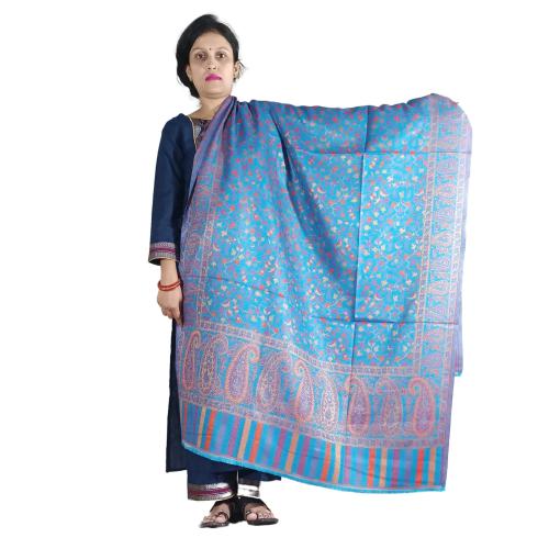 BESWADESHI Polyester Wool Blend Woven Women Shawl (LIGHT BLUE)