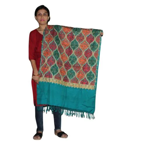BESWADESHI Women's Kashmiri Aari Embroidered Wool Stole(LIGHT GREEN)