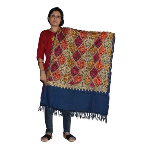 BESWADESHI Women's Kashmiri Aari Embroidered Wool Stole(NAVY)