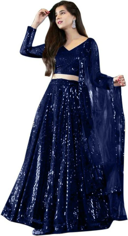 - Dark Blue Embroidered Net Lehenga Choli Sets