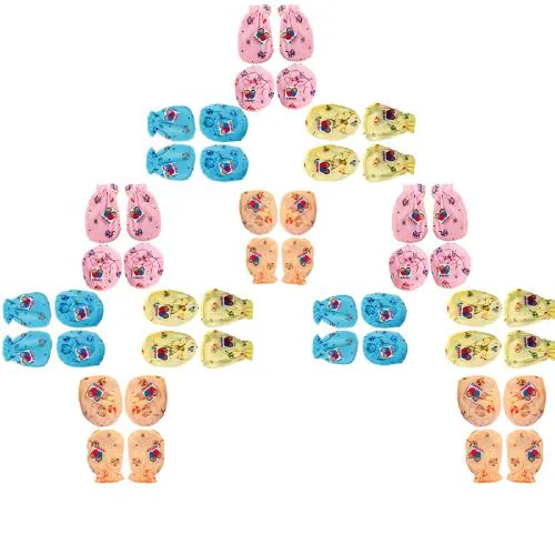BIGBOUGHT Baby Boy and Baby Girl Mittens and Booties Combo Pack With Hand Mittens (Gloves) (12 Pair) and Leg Booties (Socks) (12 Pair), 0 to 6 Months, Pure Hosiery Soft Skin Friendly Fabric