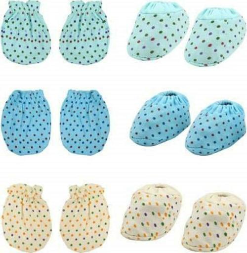 Bigbought Baby Boys and Girls Multicolor Printed Cotton Silk Hand Mittens, Leg Booties set (3-6 M)