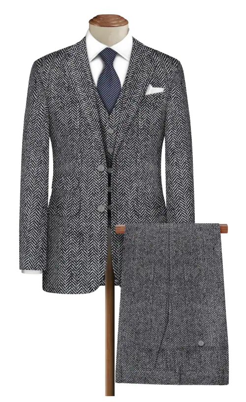 Bigreams Men's Unstitched Dark Grey Herringbone Woolen Yarn-Dyed Fabric( 4 Meter For 3 Piece Suit Fabric )