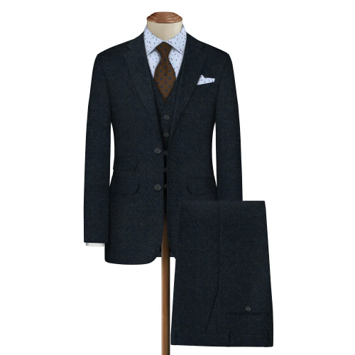 Bigreams Men's Unstitched Navy blue Herringbone Woolen Yarn-Dyed Fabric( 4 Meter For 3 Piece Suit Fabric )