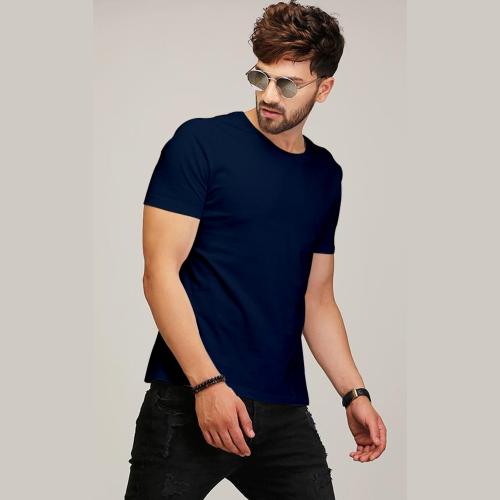 BINAYAK Men's Round Neck T-Shirt - Premium Cotton, Regular Fit, Navy