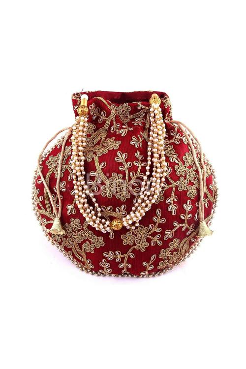 Binori Maroon Rajasthani Style Royal Clutch Silk Potli