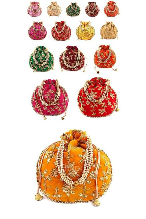 - Being lightweight and spacious these potli bags can easily be wrapped around the wrist using their drawstrings