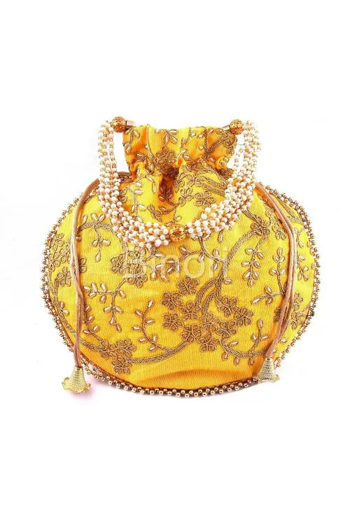 Binori Yellow Rajasthani Style Royal Clutch Silk Potli