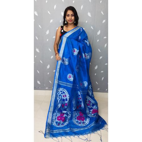 Biswas Handloom Woven Blue Clothing Jarry Weave Handloom Jamdani Saree