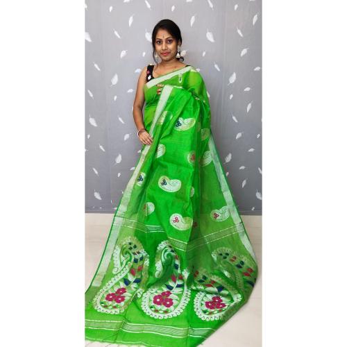Biswas Handloom Woven Light Green Clothing Jarry Weave Handloom Jamdani Saree