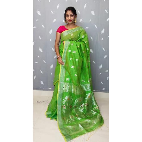Biswas Handloom Woven Light Green Clothing Jarry Weave Handloom Jamdani Saree