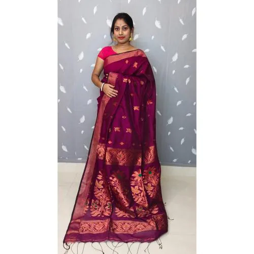 Biswas Handloom Woven Magenta Clothing Jarry Weave Handloom Jamdani Saree