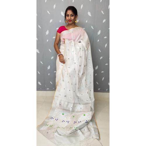 Biswas Handloom Woven White Clothing Jarry Weave Handloom Jamdani Saree