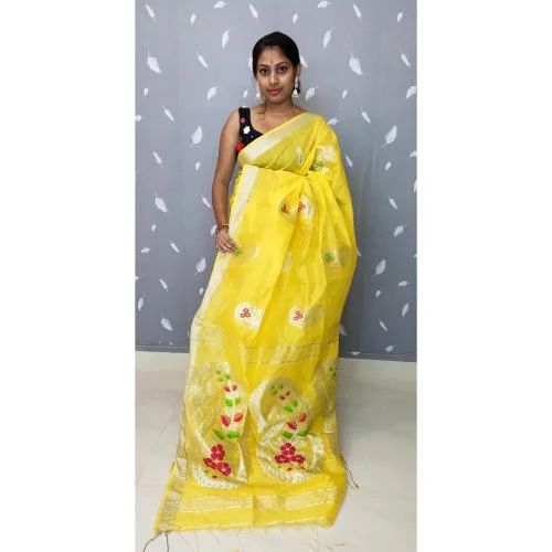 Biswas Handloom Woven Yellow Clothing Jarry Weave Handloom Jamdani Saree