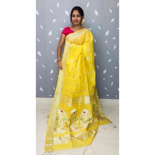 Biswas Handloom Woven Yellow Clothing Jarry Weave Handloom Jamdani Saree