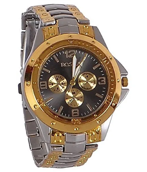 BIZOLO Analog Dial Strap Chain Gold Silver Dial Black Color Men Watch - For Boys