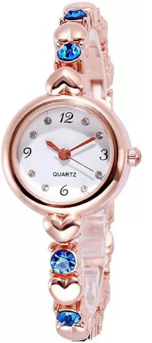 BIZOLO Bracelet Watch Rose Gold Blue Diamond Strap Chain Dial Analog Watch - For Girls
