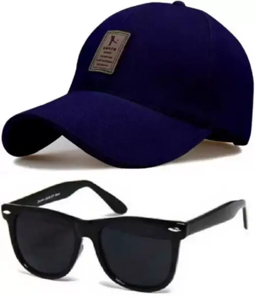 BIZOLO Self Design, Solid, Ediko Cap Blue Wayfarer Combo Set Of 2 Cap+Sunglass