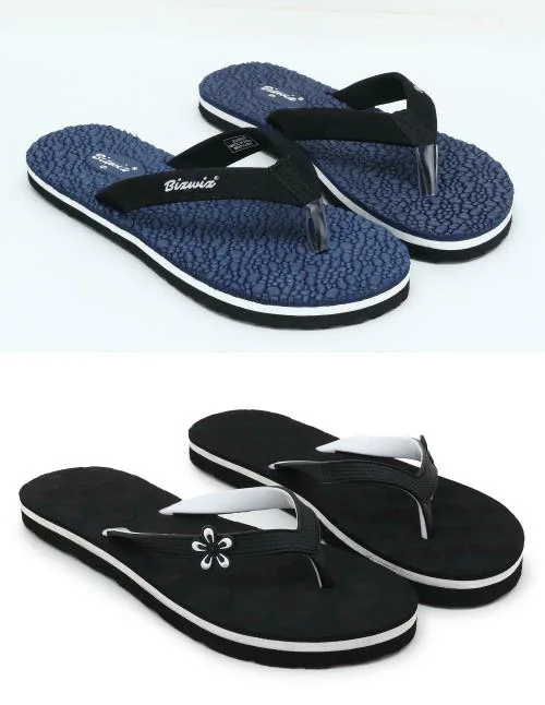 Bizwiz's Trendy & Combo of 2 Flip flops/Slippers for Women - (Blue , Black)