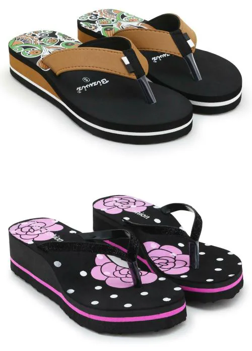 Feens Trendy & Combo of 2 Flip flops/Slippers for Women - (Brown , Purple)