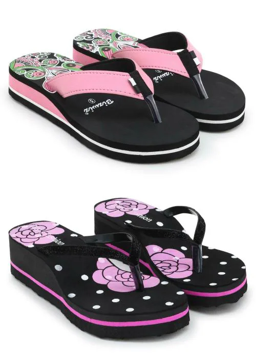 Feens Trendy & Combo of 2 Flip flops/Slippers for Women - (Pink , Purple)