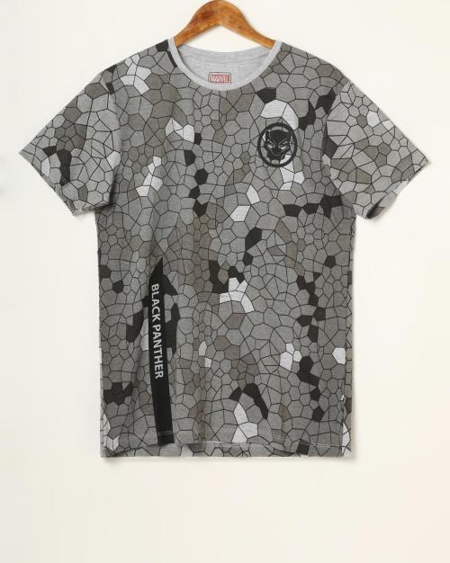 Regular Fit Black Panther Print Crew-Neck T-Shirt