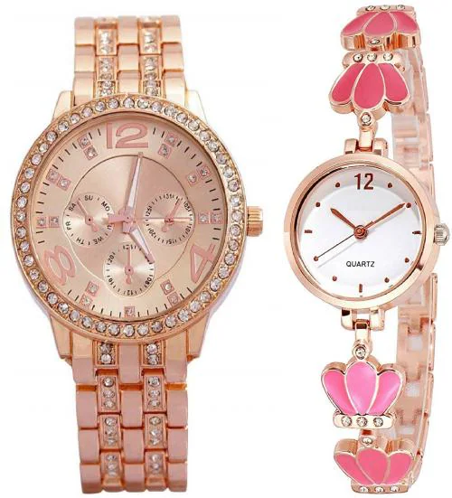 Blutech Analog Rose Gold Dial Rose Gold Strap Watch For Girls (Pack Of 2)