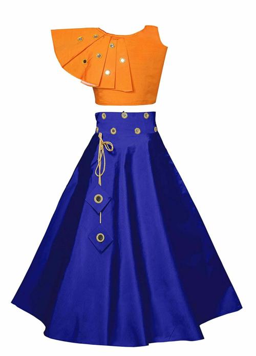 Bollylounge Ethnic Wears Orange-Blue Lehenga Choli For Girls