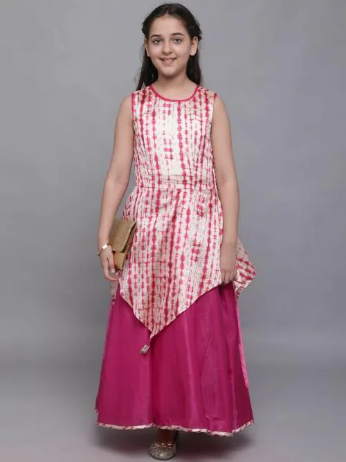 Bollylounge Girls Pink Digital Print Silk Single Gown Dress
