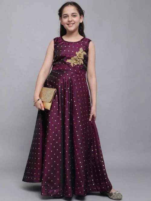 Bollylounge Girls Purple Solid Taffeta Single Gown Dress