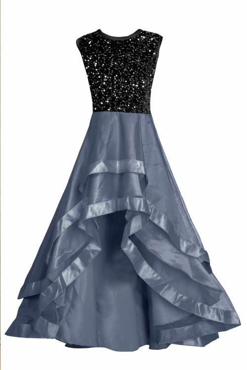 Bollylounge Girls Silver Embellished Net Single Fit And Flare Dress