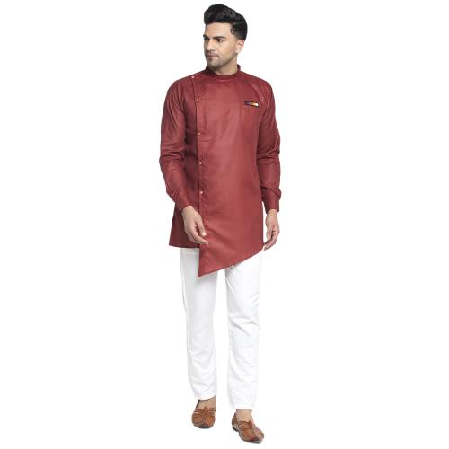 Bontestitch Cotton Blend Regular Fit Knee Length Kurta Pajama Set for Men (Maroon, Size: XXL)